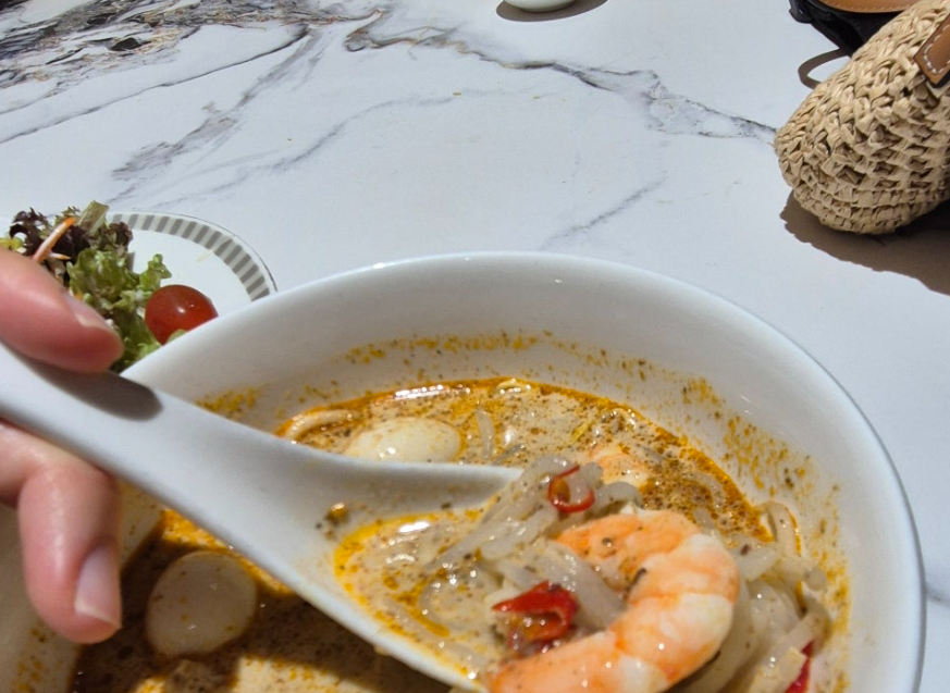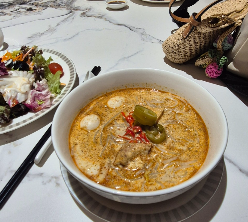 라운지에서 절대 빼놓을 수 없는 메뉴, 바로 ‘락사’입니다. 특유의 코코넛 밀크 베이스와 얼큰한 국물은 한국인 입맛에도 제격입니다. 개인적으로 [락사 맛에 대한 형의 디테일한 평가 – 예: 면발이 어떻다, 국물이 진하다 등] 느낌이라 두 그릇이나 비웠습니다. 배를 채운 후에는 샤워실을 이용했습니다. 수압은 [수압 평가 – 예: 아주 강력했고], 기본적인 어메니티가 잘 갖춰져 있어 찝찝한 몸을 씻어내기 완벽했습니다. 환승객이라면 샤워실 이용은 선택이 아닌 필수입니다.